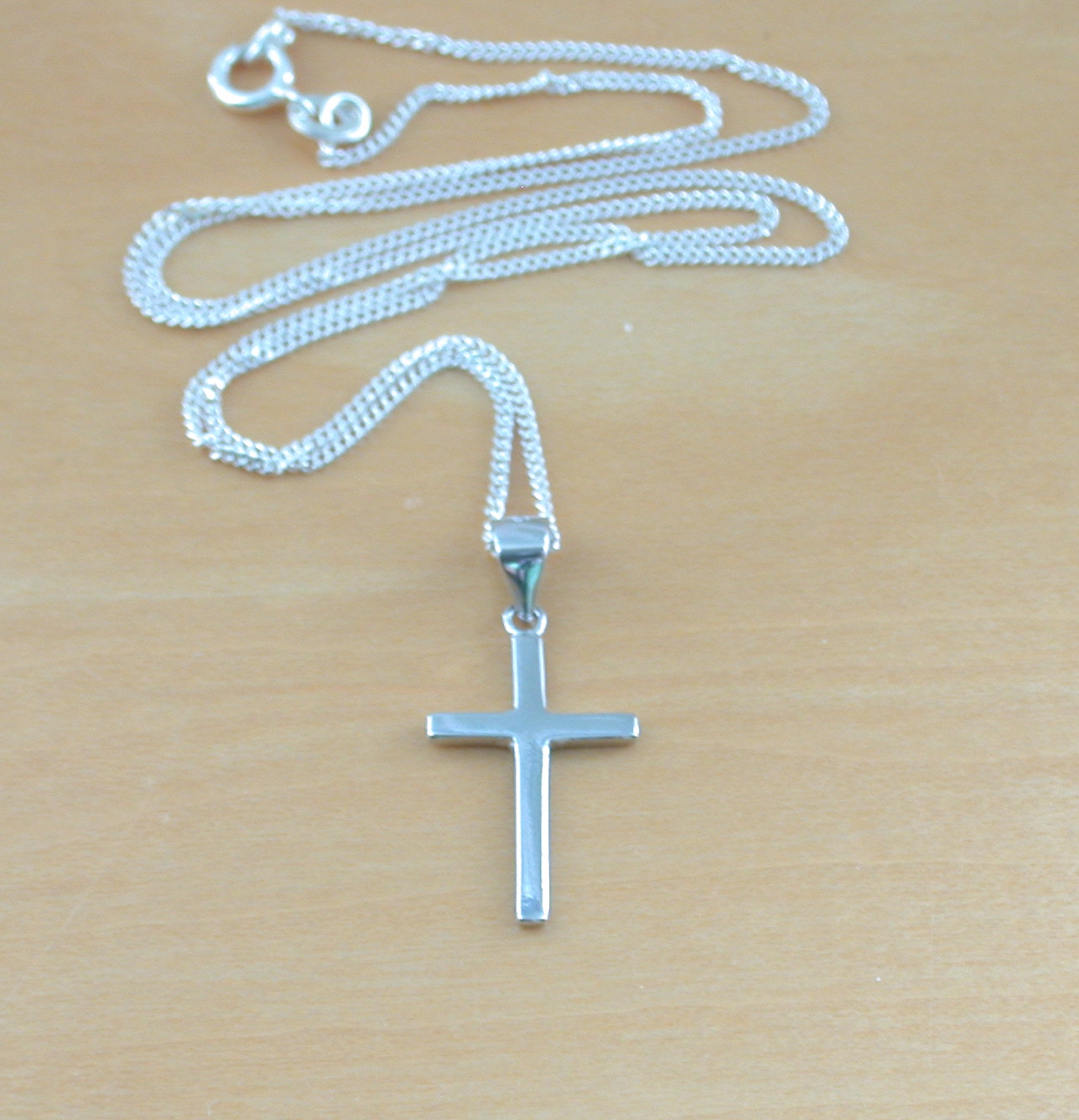 Sterling Silver Blue Opal Cross Pendant & Chain