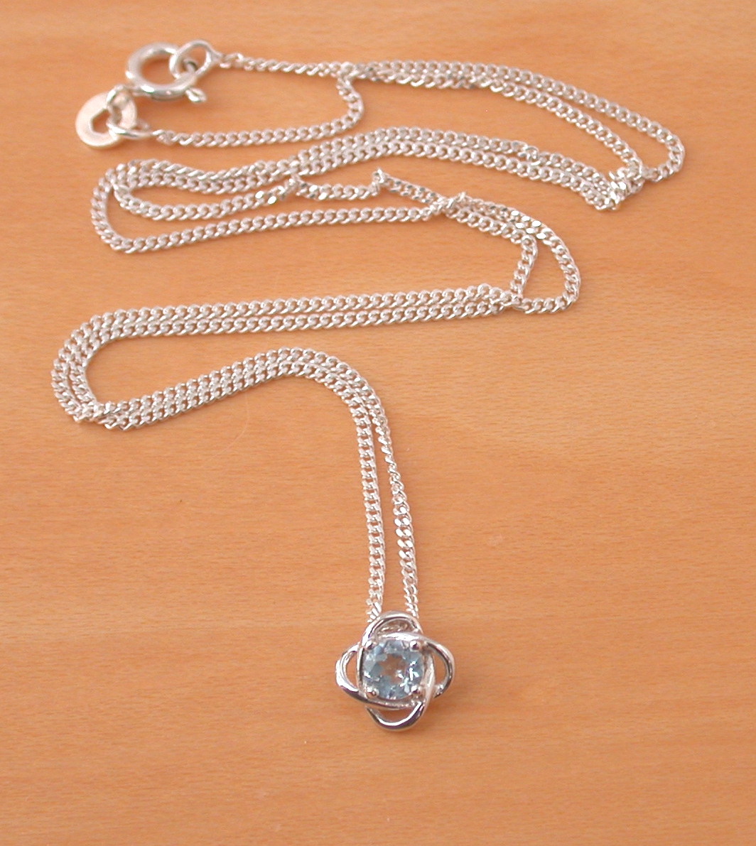 Sterling Silver Blue Topaz Pendant & Chain