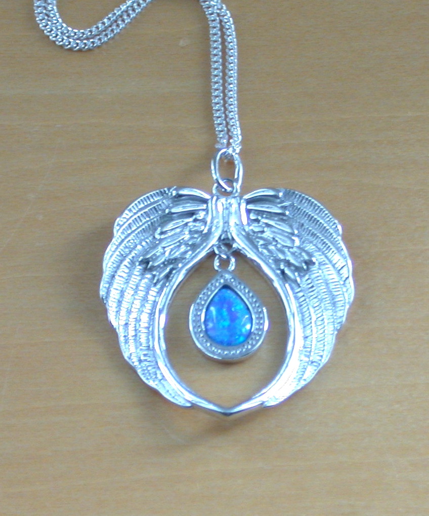 Sterling Silver Blue Opal Angel Wing Necklace & Earrings