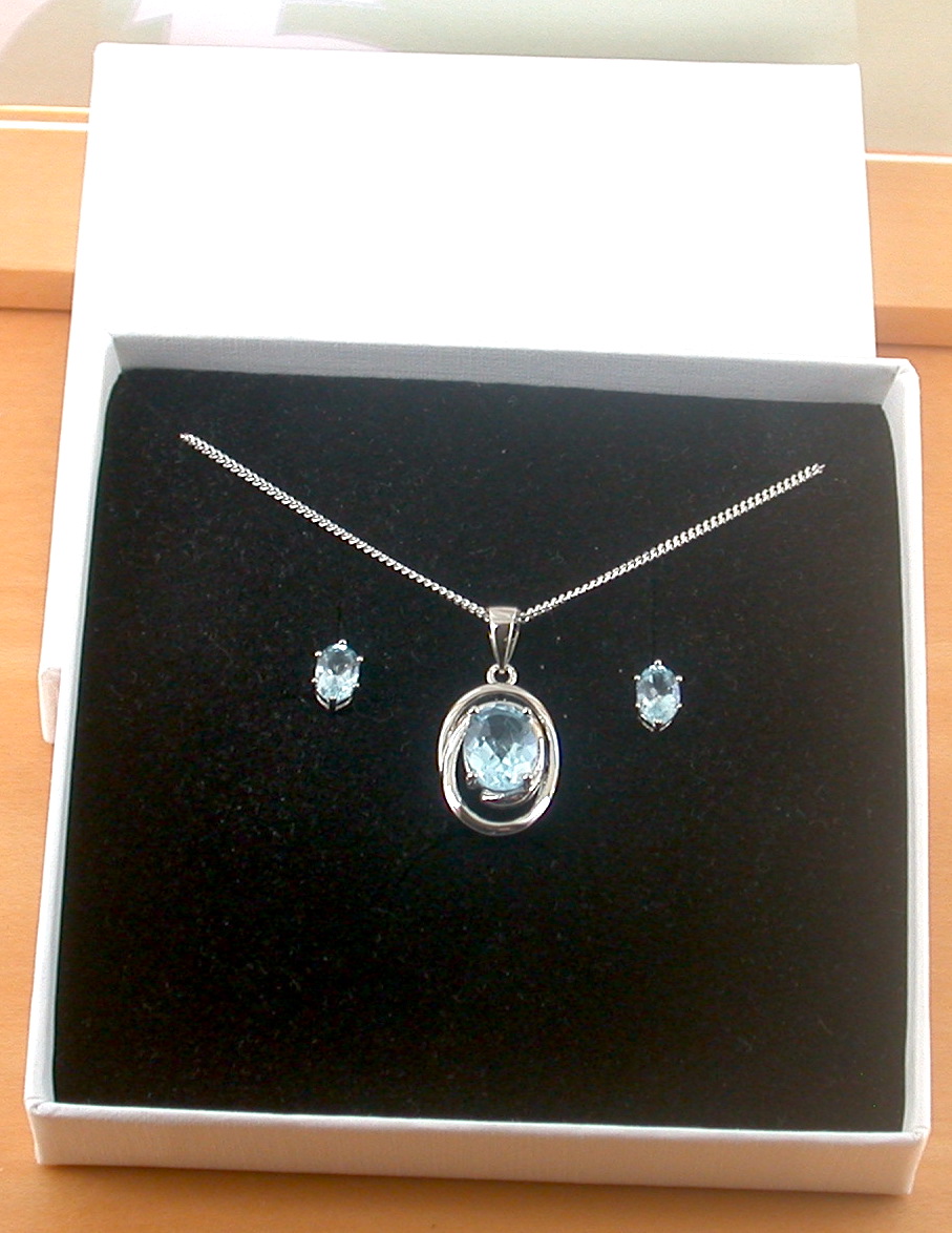 Sterling Silver Blue Topaz Solitaire Pendant & Chain