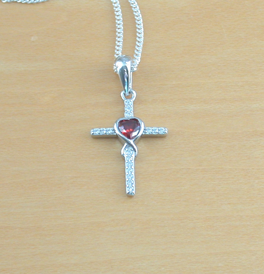 Sterling Silver Garnet Cross Pendant & Chain