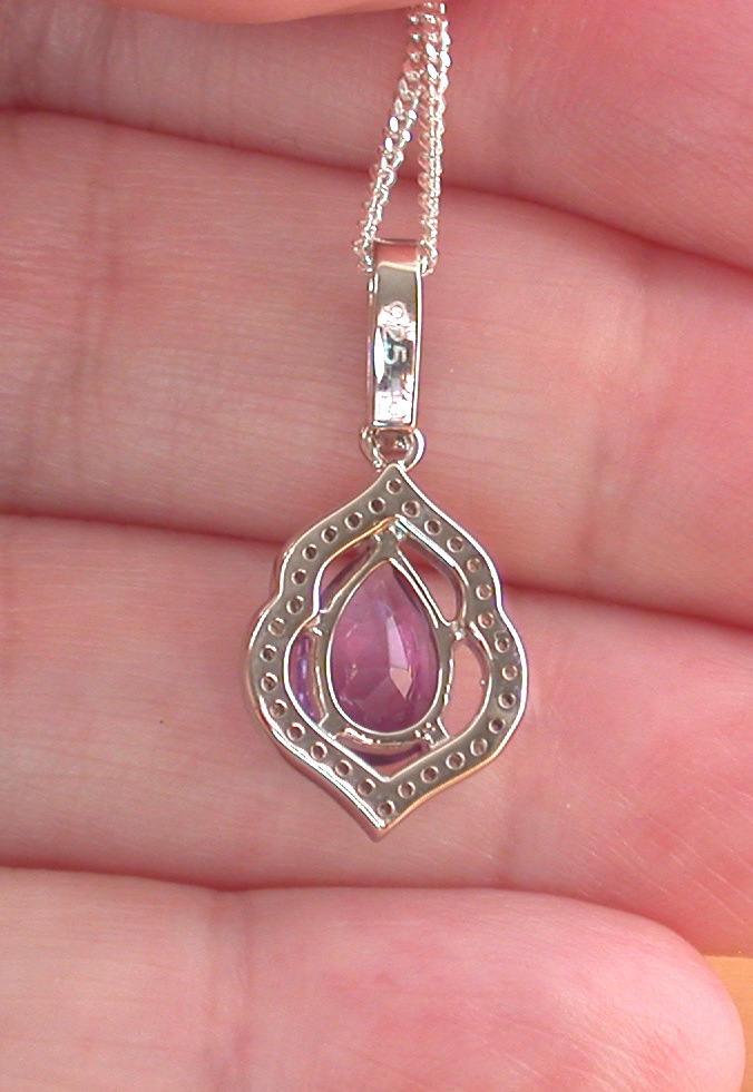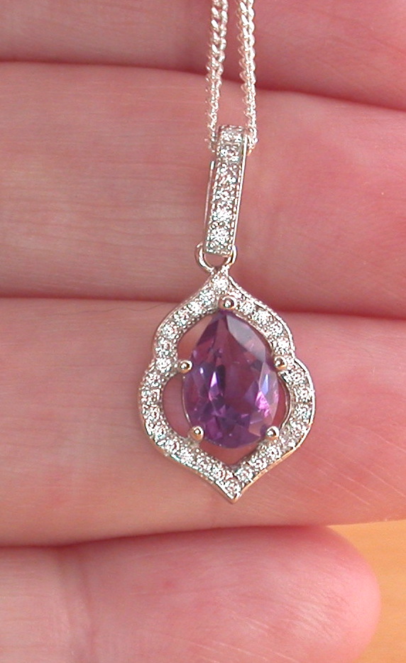 Sterling Silver Amethyst & Cz Pendant & Chain