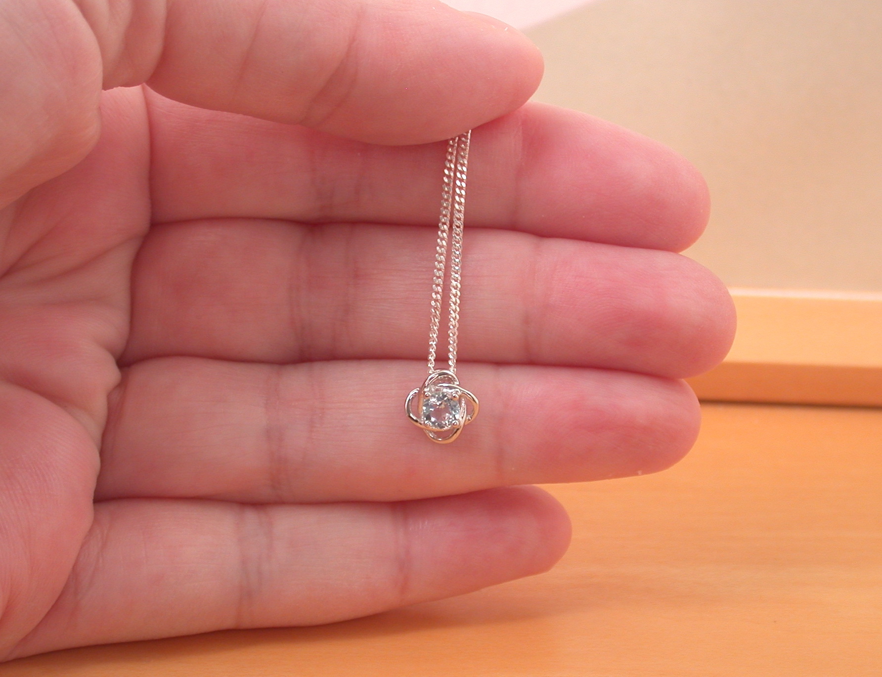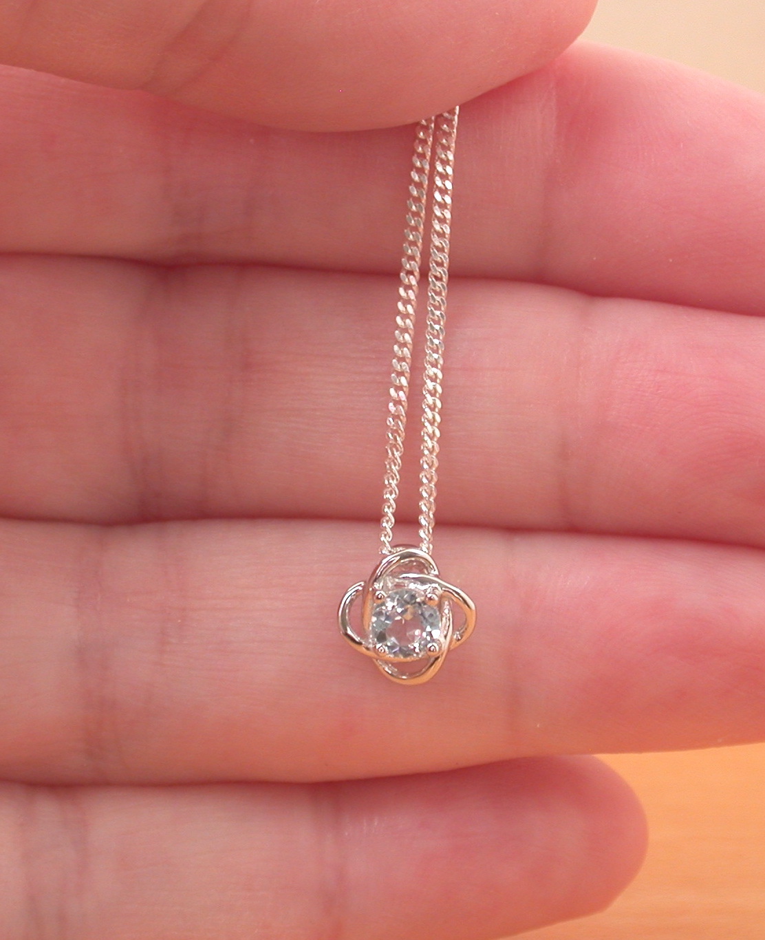 Sterling silver pendant with genuine blue topaz gemstone. This pendant measures 9mm length x 9mm width. The centre topaz stone measures 4mm. Stamped 925. Topaz is the birthstone for November.