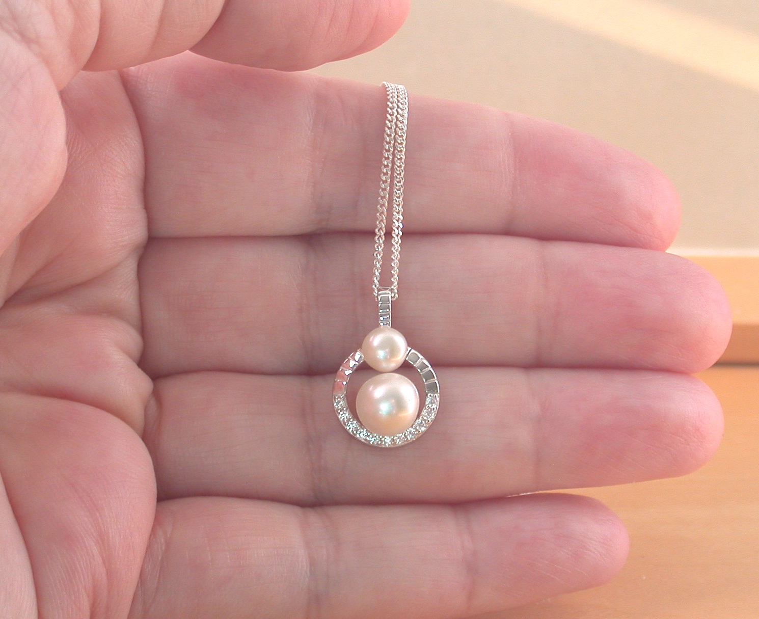 This pearl pendant, chain and earrings will come complete with presentation gift box and bag and will also include freshwater pearl gemstone description card below: